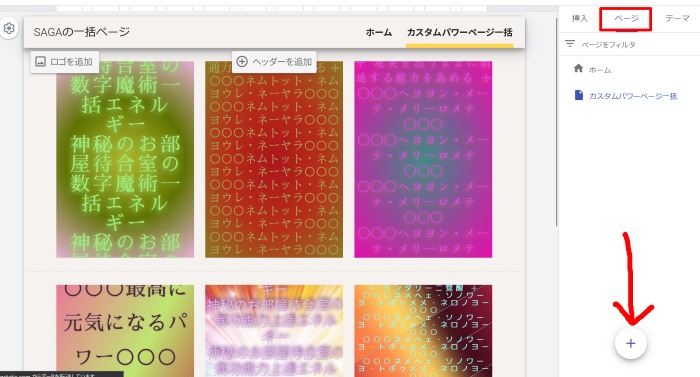 お部屋の知恵袋板(パワー体験ページの活用法 その3)にて「Googleサイトで一括ページが作れる」と教えていただきました。