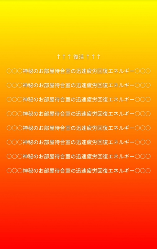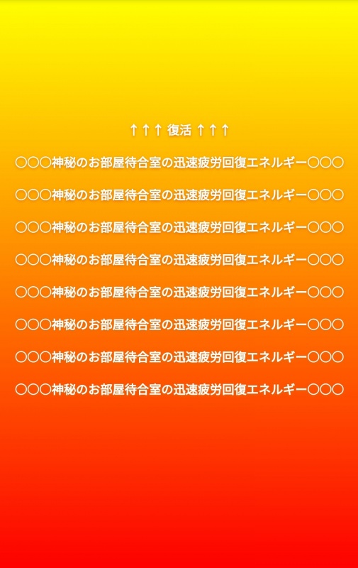 ↑↑↑ 復活 ↑↑↑ ○○○神秘のお部屋待合室の迅速疲労回復エネルギー○○○