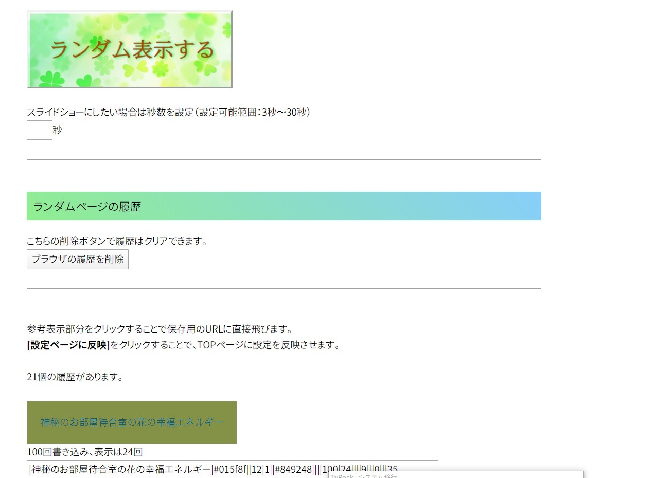 ランダムページに「スライドショー機能」「専用履歴」を付けました。