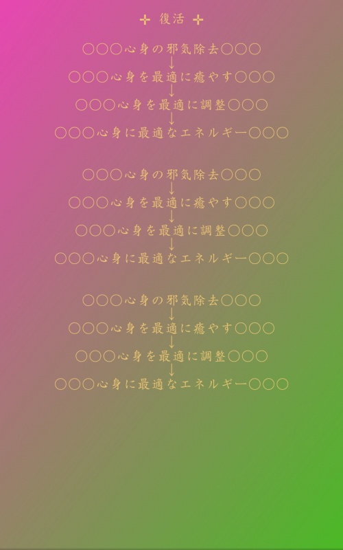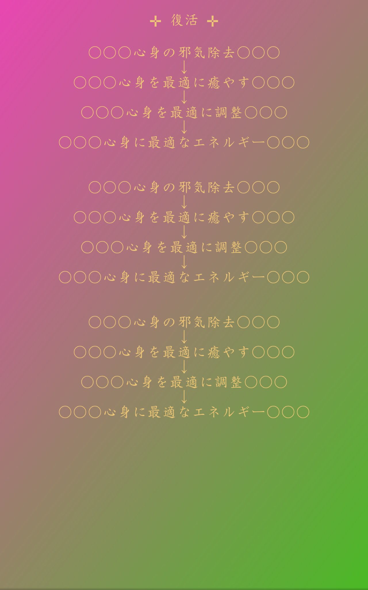 ✛ 復活 ✛ 〇〇〇心身の邪気除去→心身を最適に癒やす→心身を...