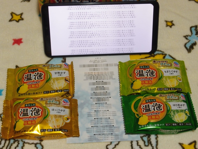 この前作った免疫護符のパワーを注入し、入浴剤とお風呂に対して文字波動も設定しておきます。