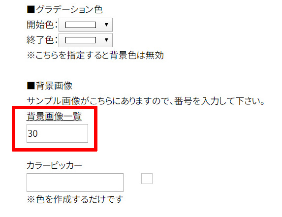 「背景画像一覧」のリンクから選択できる画像が見られます。