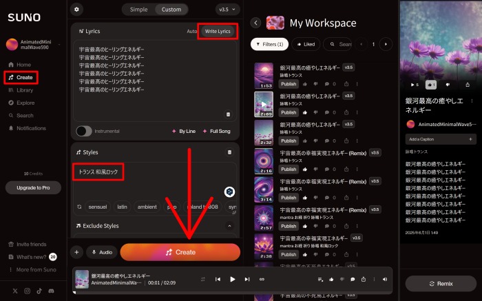 AIの自動作曲ツール Suno | AI Music にて波動音楽を作ってみました。
