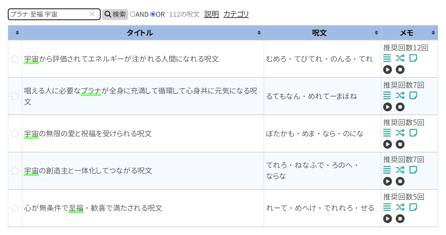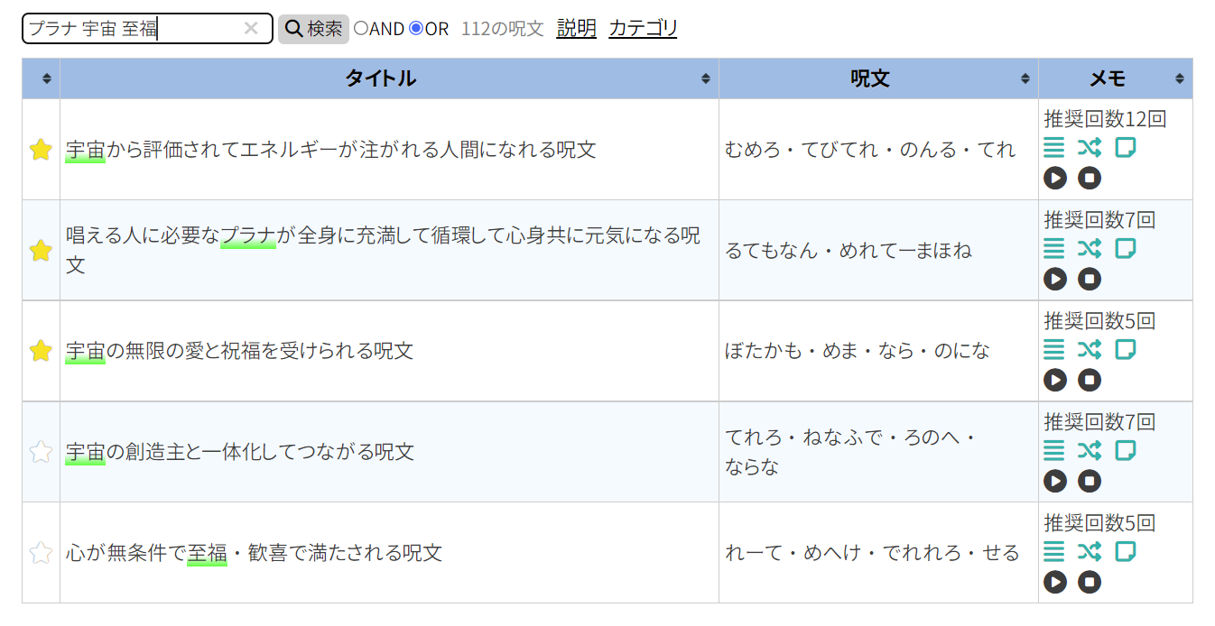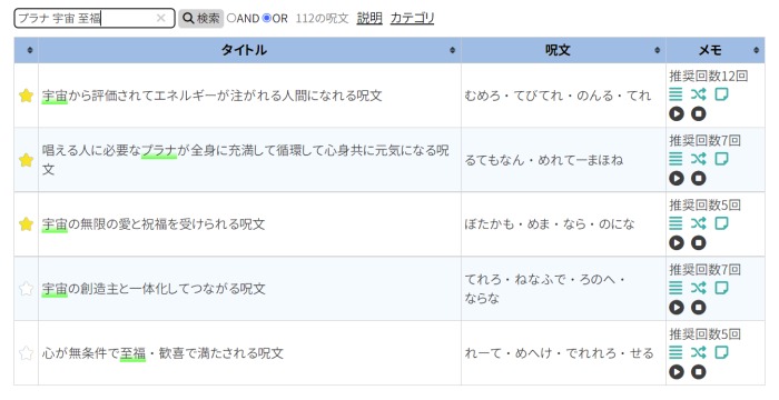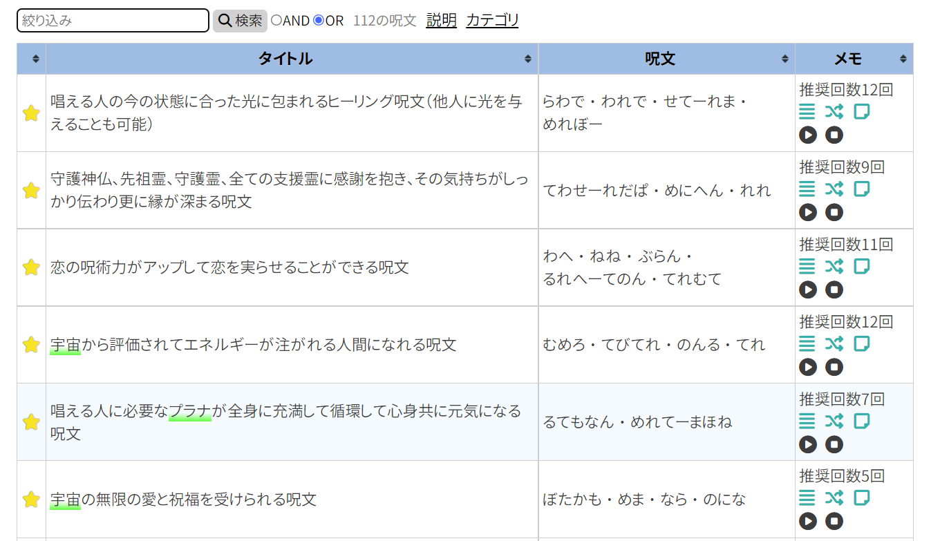 「表示されているお気に入り呪文のみ」を読み上げるようになったので、カテゴリ選択している状態や検索後の一覧表示でそれぞれ読み上げる呪文が変わります。