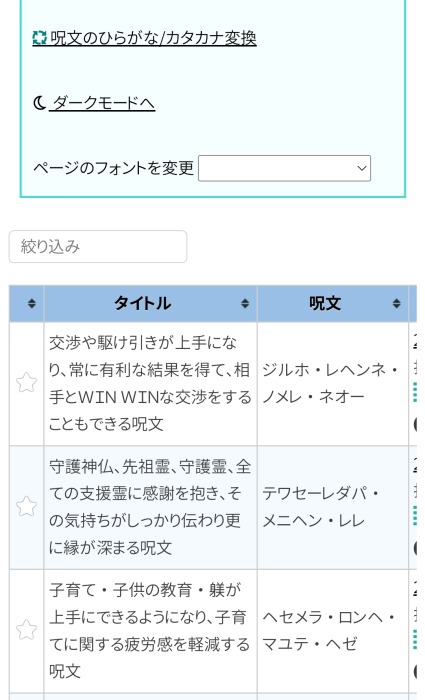 最近のひらがな呪文のみをリストにしていましたが、掲示板のログから少し追加したデータも合わせて表示できる機能を追加しました。