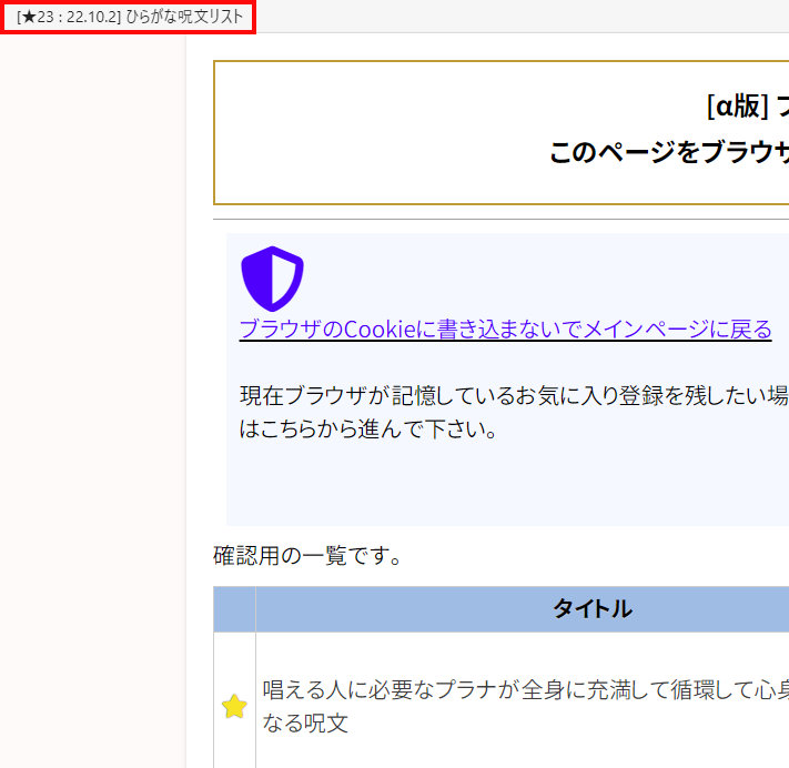ひらがな呪文リスト:Cookieにデータ保存する仕様になりました