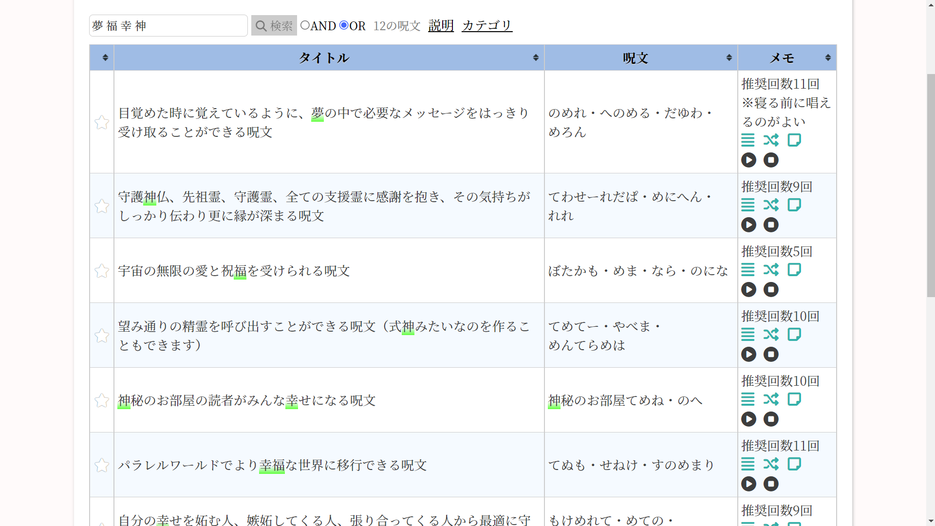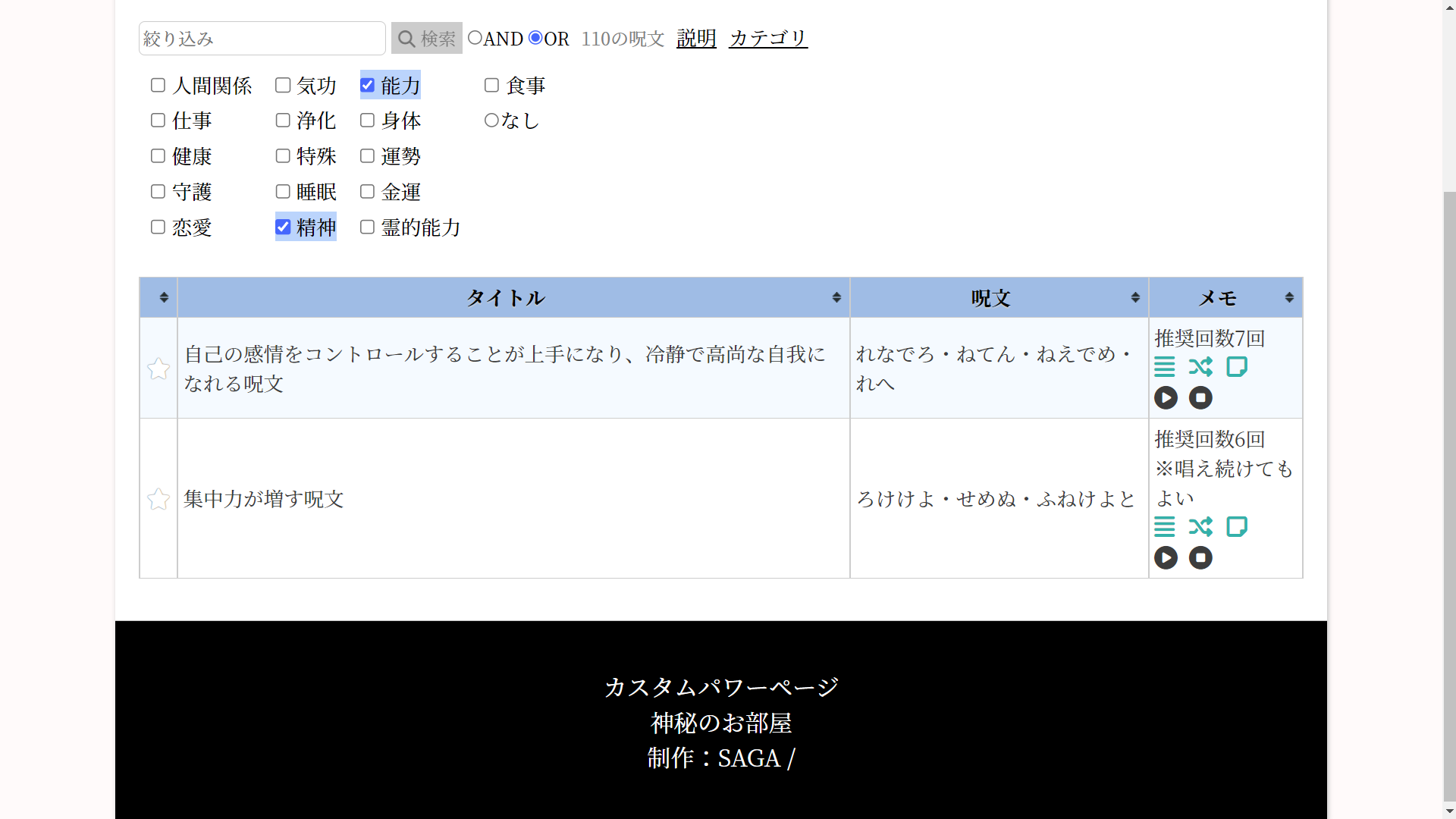 ひらがな呪文リスト:検索機能を強化しました