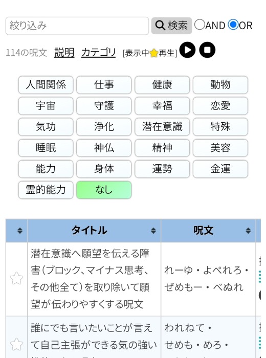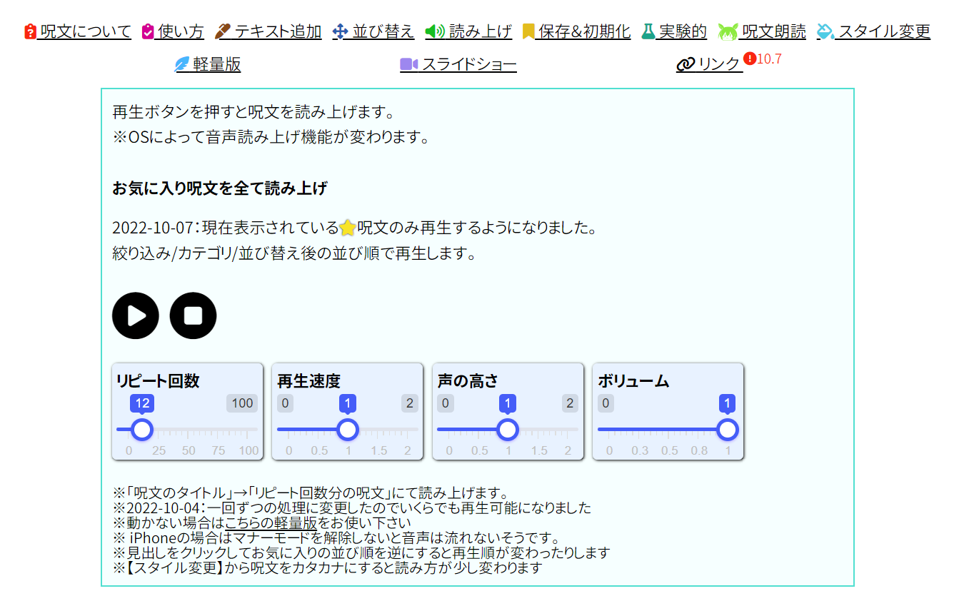 ひらがな呪文リスト:カテゴリ選択をしやすく / 読み上げのボリューム調整
